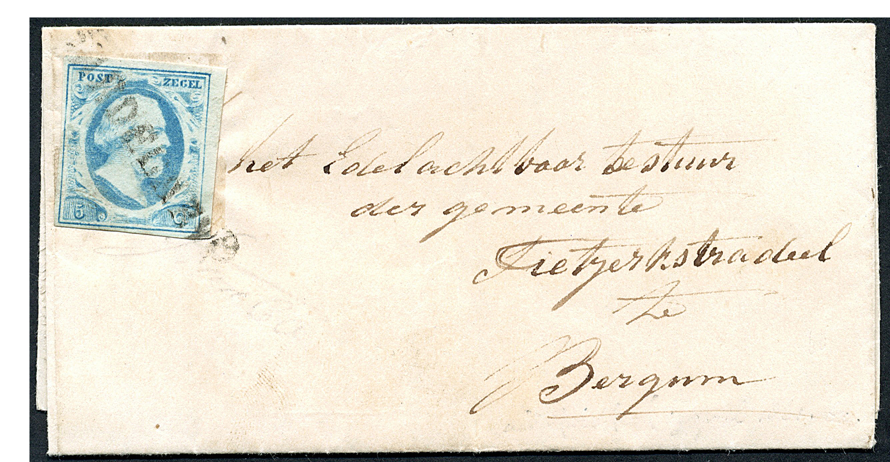 Naamstempel HARDEGARYP (EY.100) op 5 cent. Smalle tot vol gerande zegel op complete brief, geschreven te Roodkerk op 29-4-1861, naar het gemeentebestuur van Tietjerksteradeel te Bergum, met op az. geschreven [handtekening] + 'afgegeven'