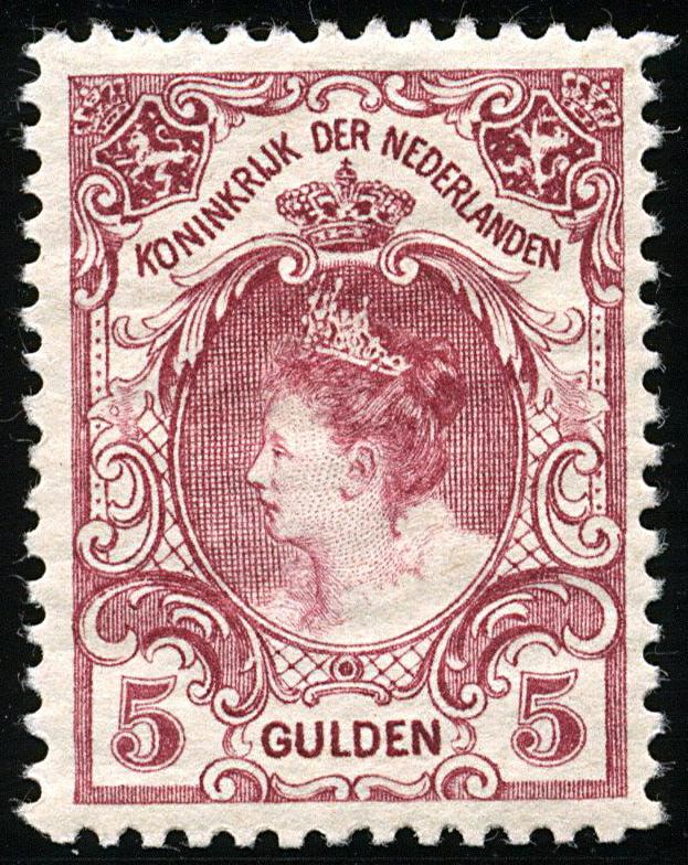 79D, 5 gulden wijnrood, Lt. 11½, postfris prachtex. Cert. Muis (2004). € 925