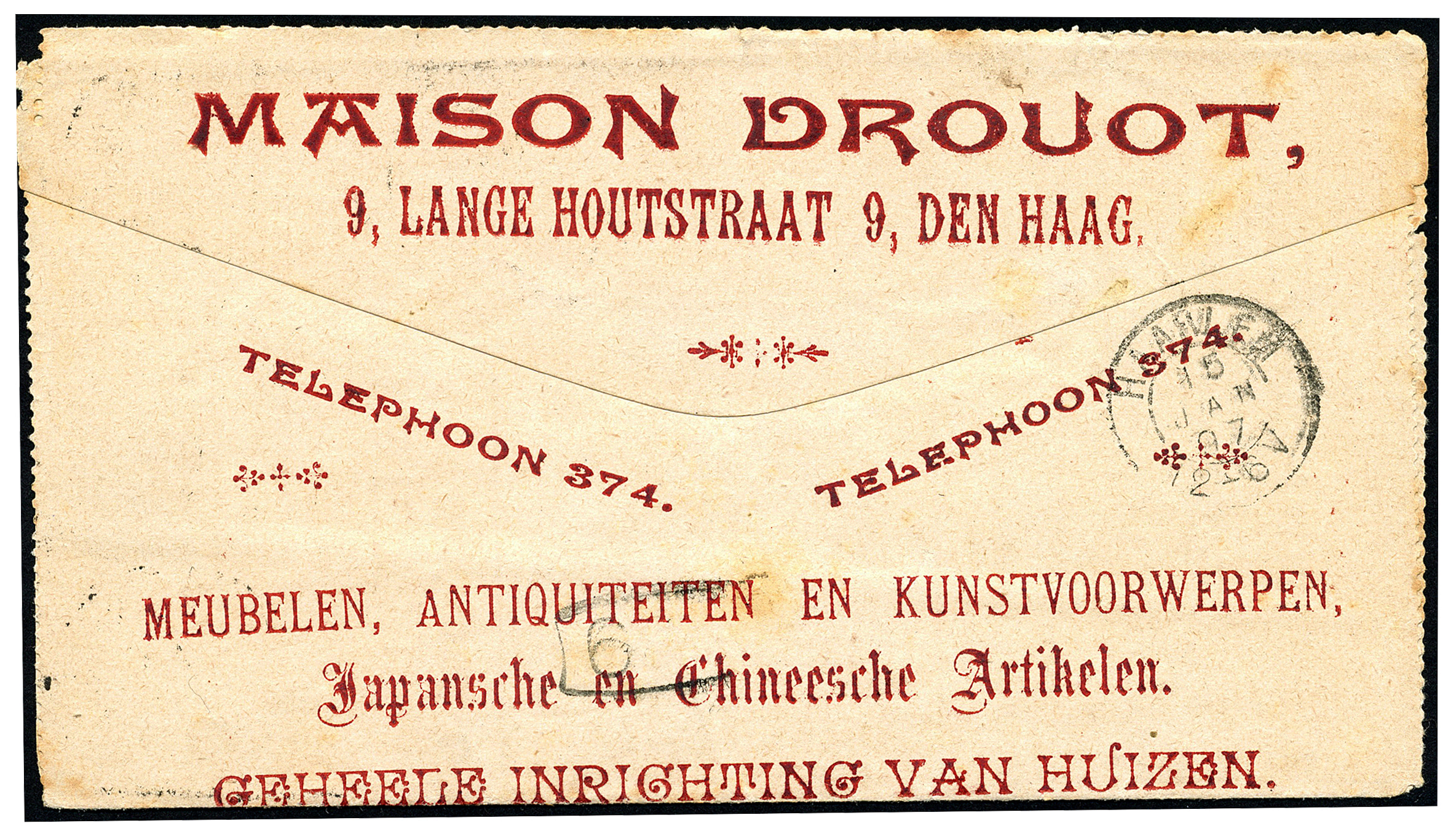 Croiset's Reclame Postblad RPB3 van 'sGravenhage 14-1-1897 (op vz. zowel kleinrond als grootrond) naar een medisch student te Haarlem 15-1