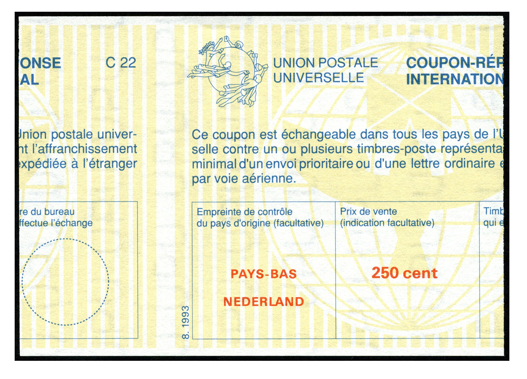 Internationale Antwoordcoupon van 250 cent G48 met variëteit 'Versneden'. Ongebruikt prachtexemplaar