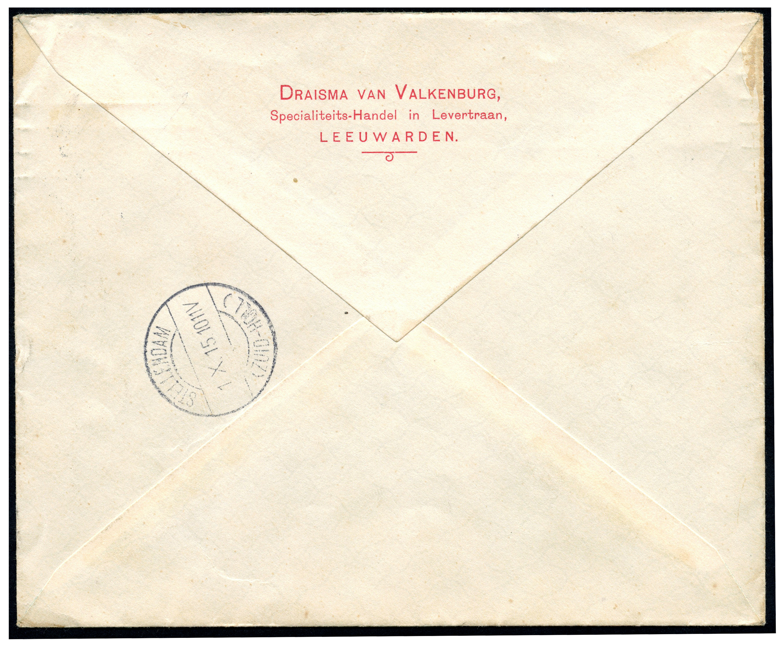 Particuliere envelop van 5 cent Bontkraag P16c van Leeuwarden 30-9-1915 naar Stellendam/(Zuid-Holl) 1-10-1915. Schaars couvert!