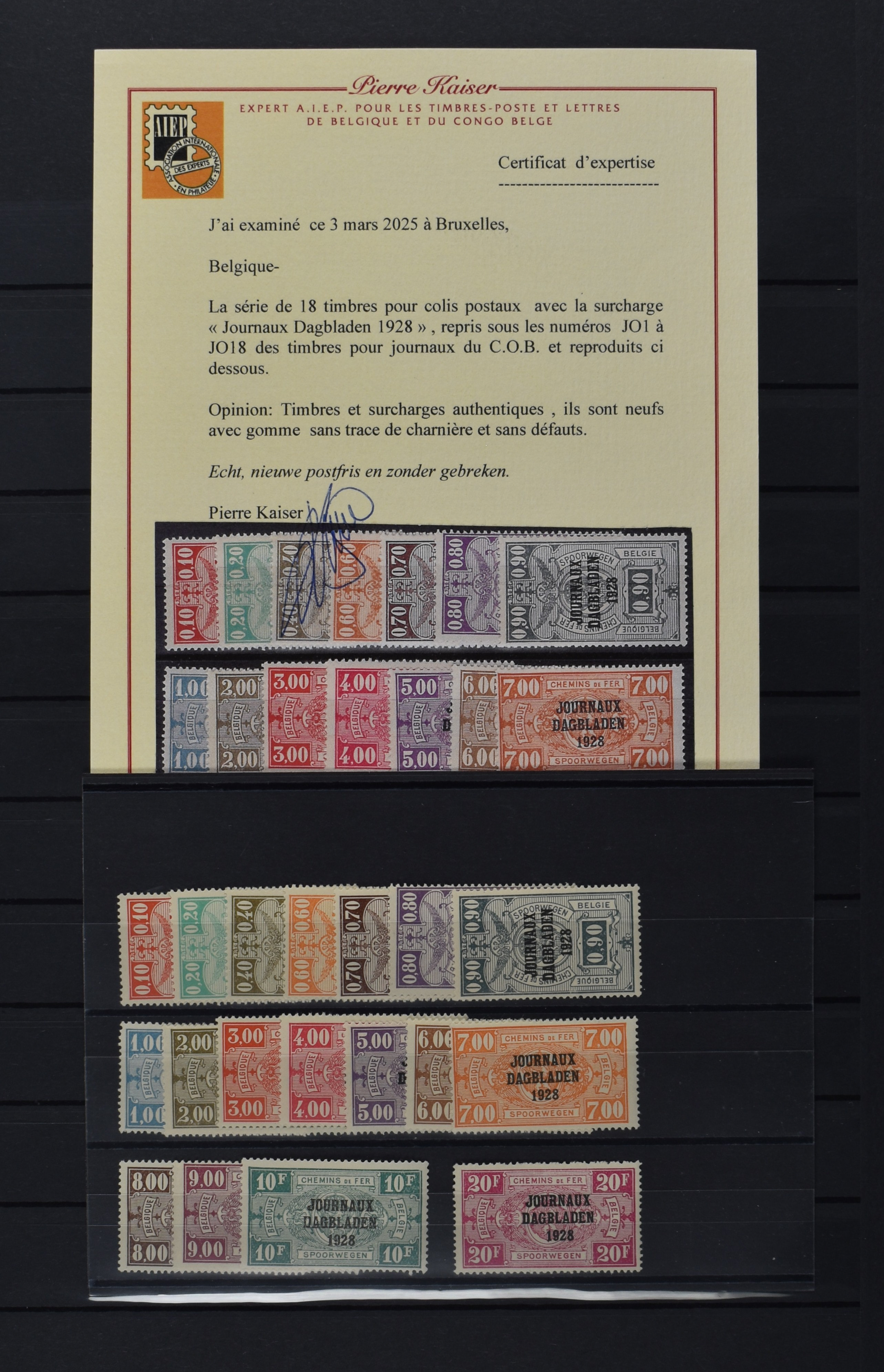 BELGIË 1928, Dagbladzegels, OBP JO1/18, postfrisse prachtserie met certificaat P. Kaiser (2025). € 1150