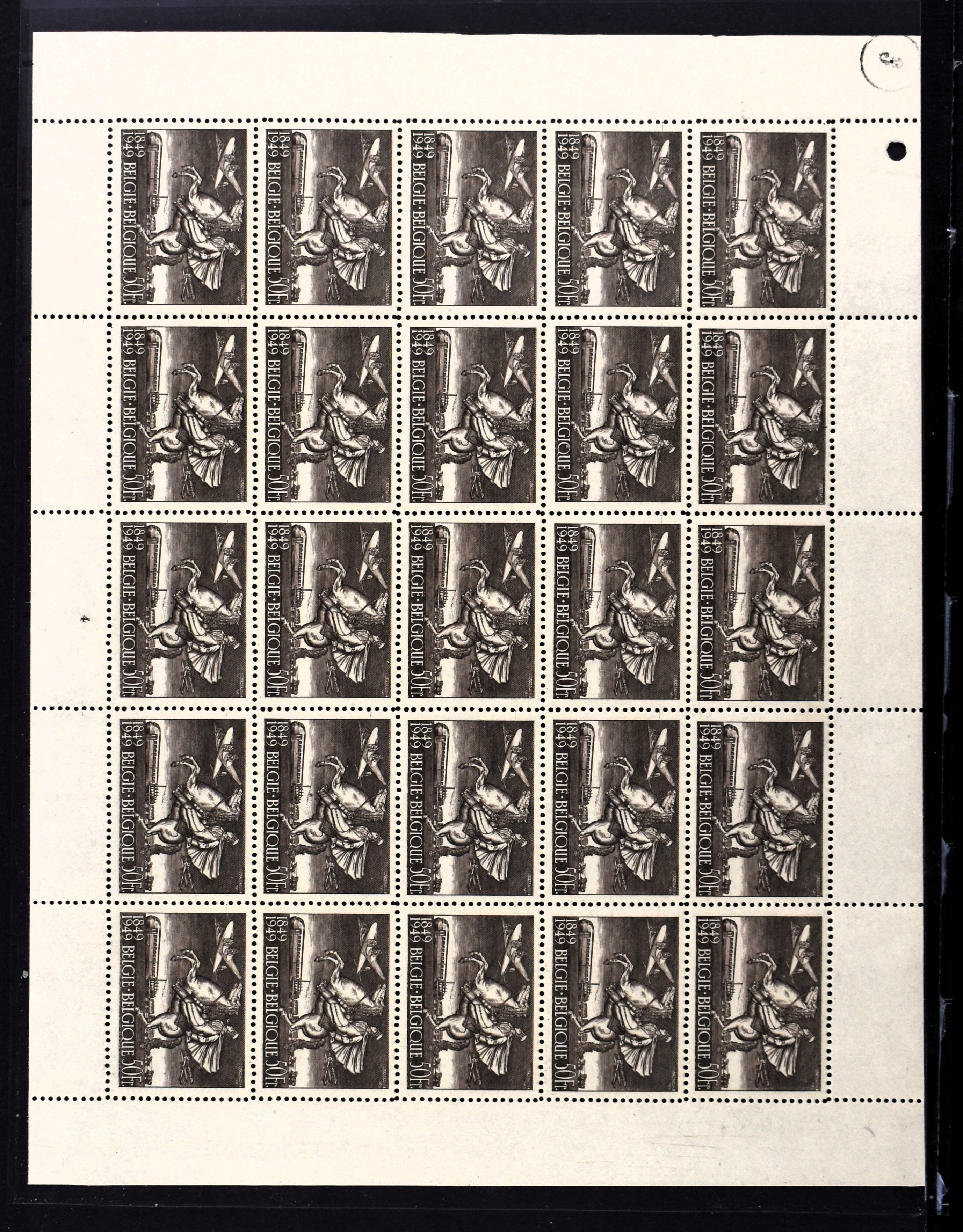 BELGIË 1949, OBP F810A, 'Eeuwfeest van de eerste Belgische postzegel', 50F bruin in postfris velletje van 25 stuks, € 1550