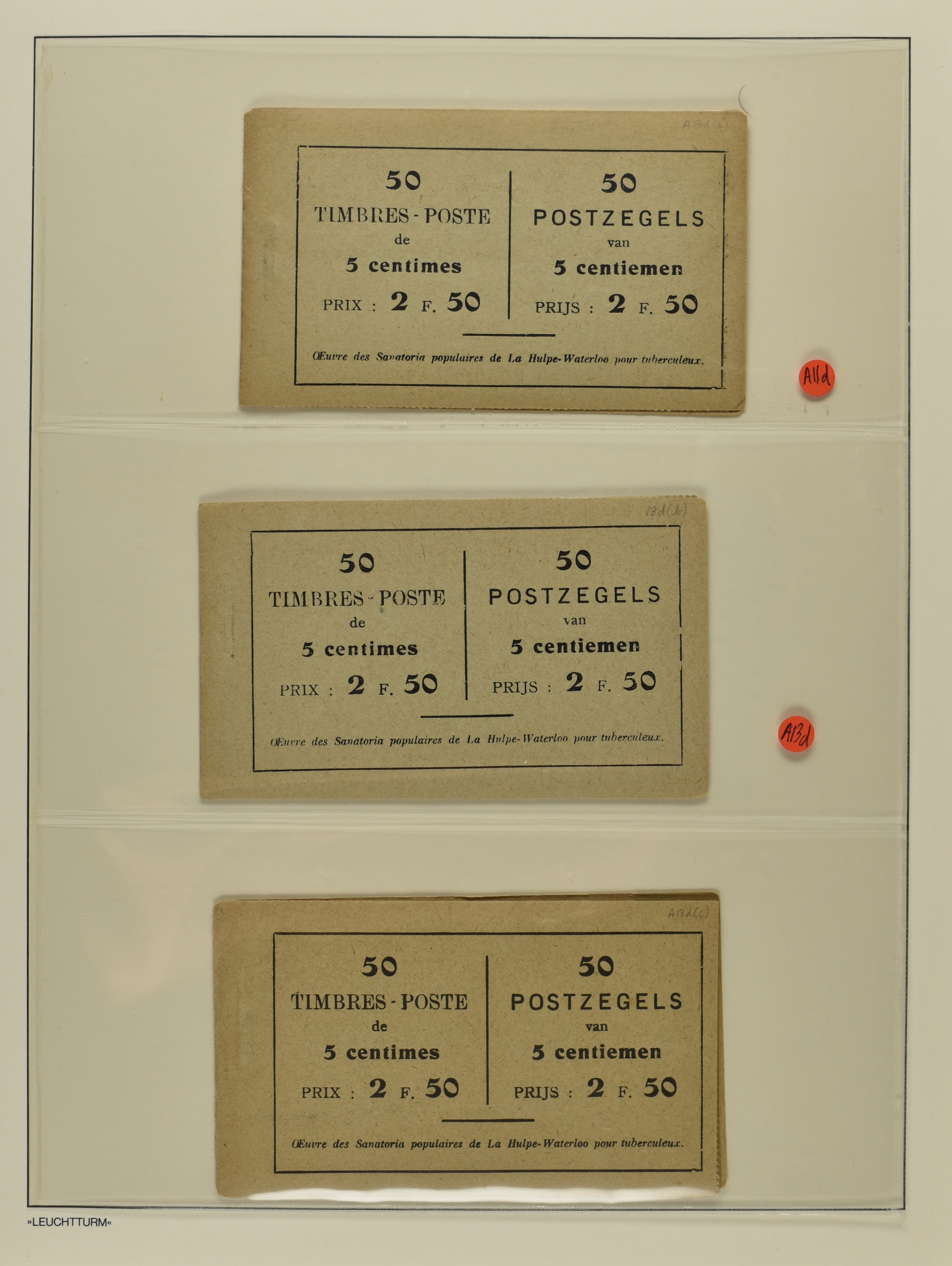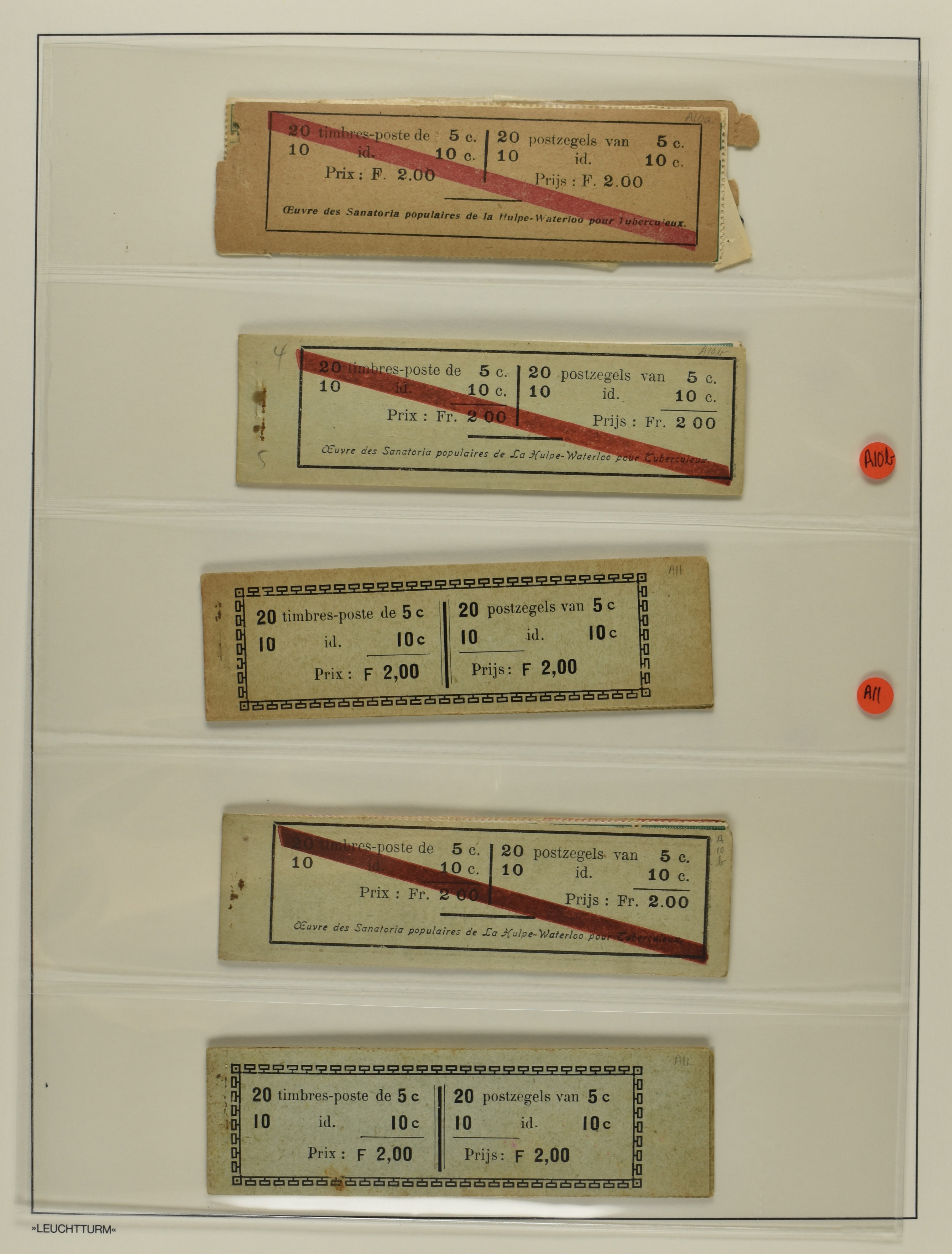 BELGIË, verzameling postzegelboekjes tussen de nummers 10b en 35b op albumbladen met diverse goede nummers en typen waarbij o.a.: 10b, 11, 13d, 15a/b, 23, 30/32, 34a en 35a/b. Mooie verzameling met een hoge cataloguswaarde!