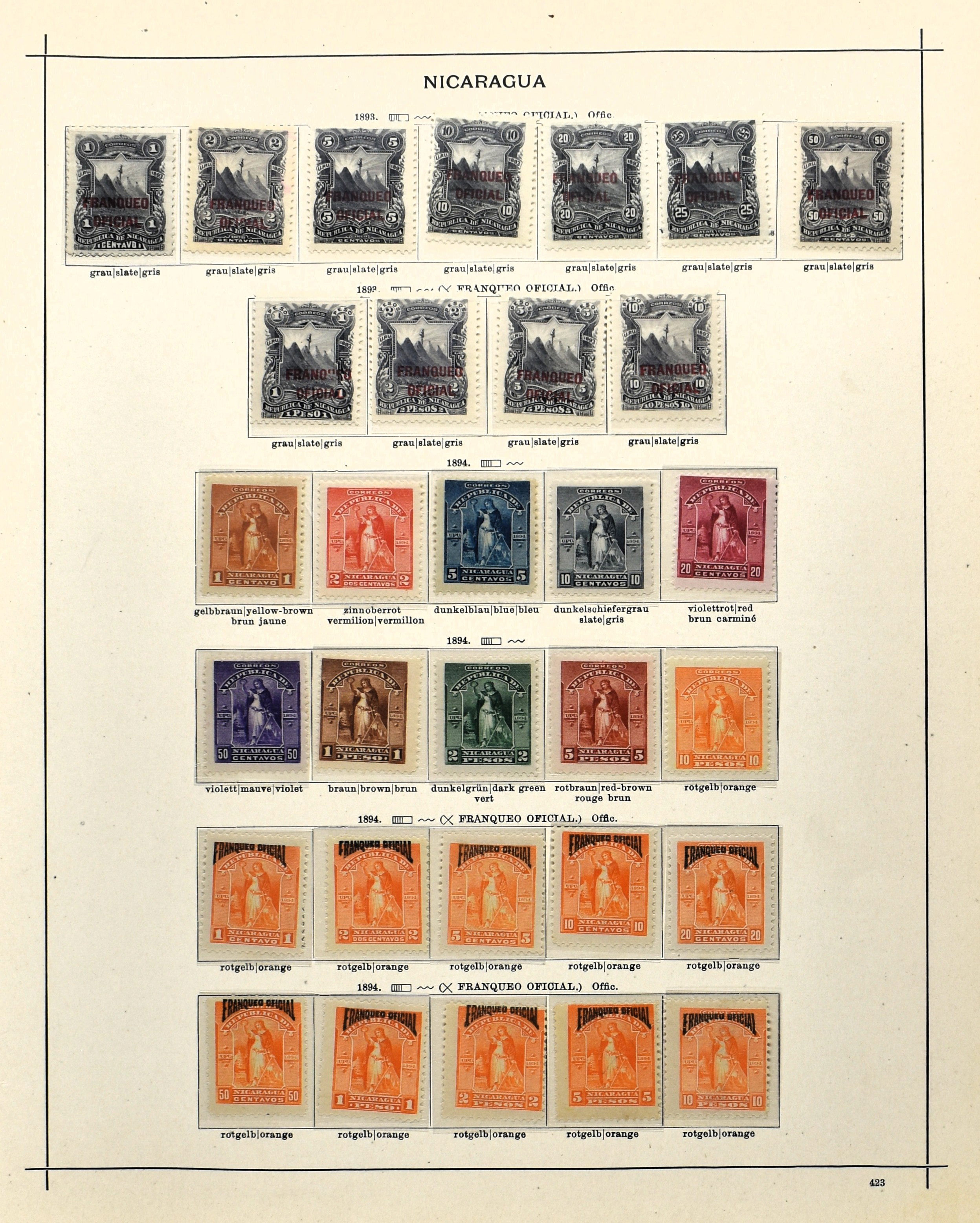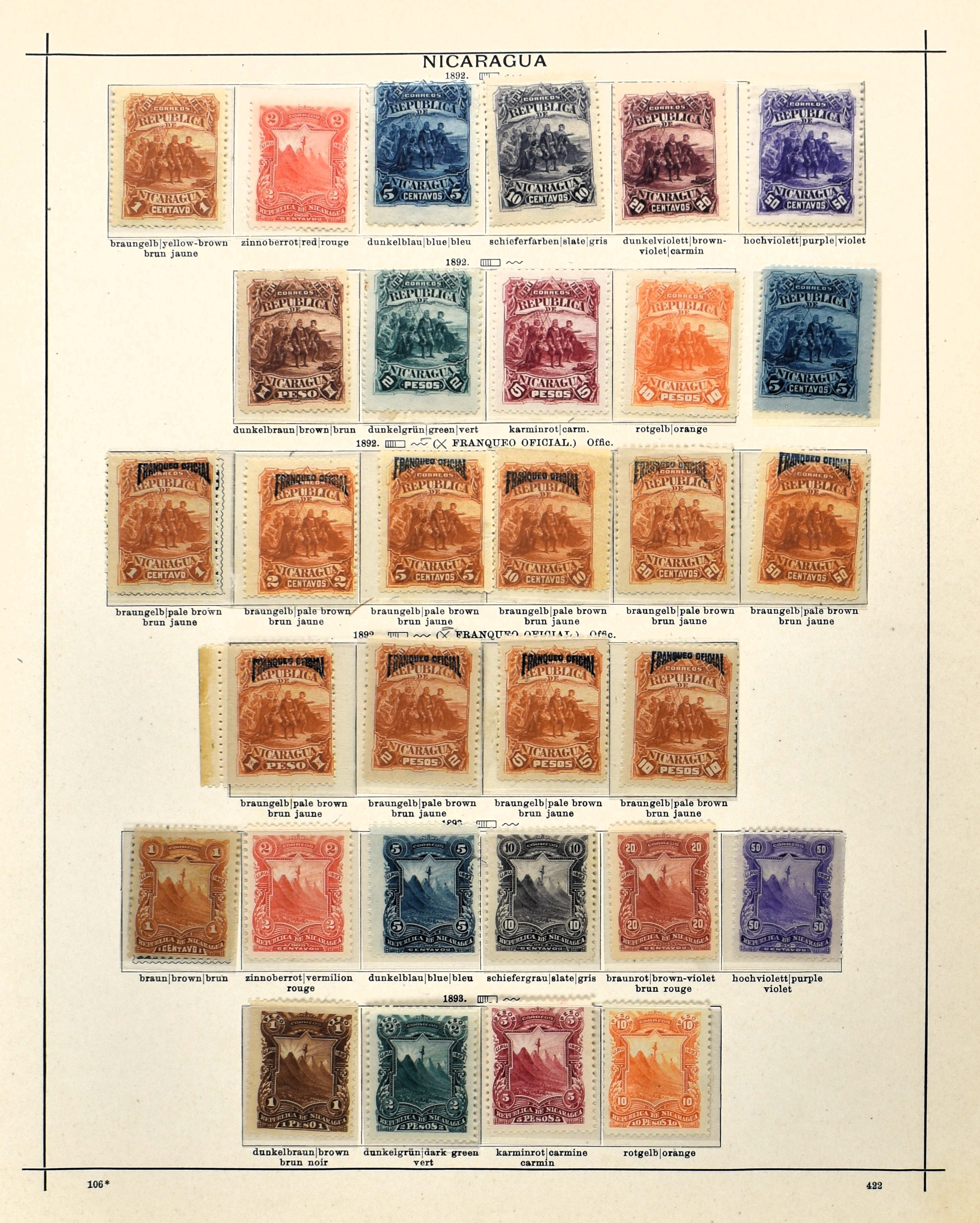 MIDDLE AMERICA 1856-1901, o/*/** on albumpages with better numbers and sets from Costa Rica, El Salvador, Guatemala, Honduras, Mexico, Nicaragua and Panama. Nice lot which is completely depicted on our website