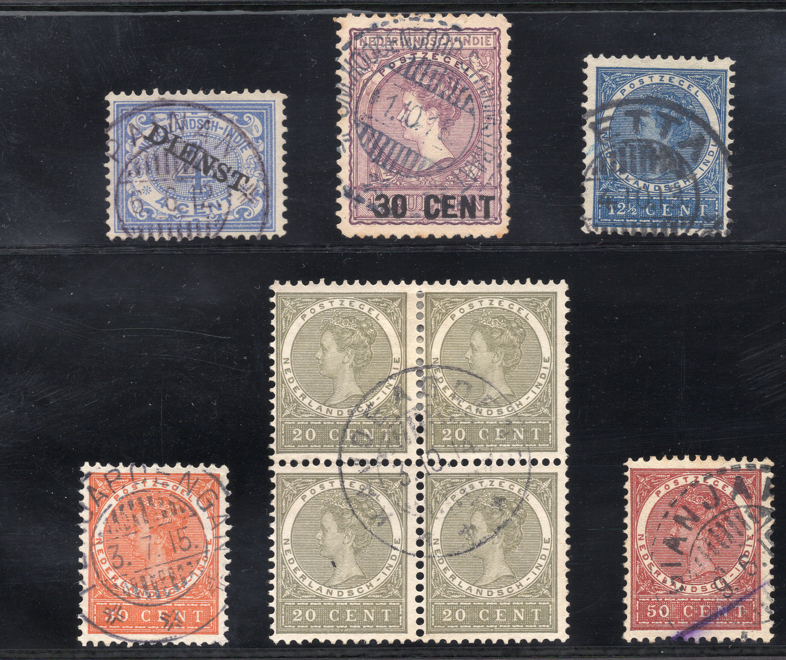 NED.- INDIË KORTEBALKSTEMPELS, mooie verzameling van verschillende typen, ook van eenzelfde kantoor, op losse zegels (w.o. nr. 141A), paren en meerdere blokken van vier, zegels op knipsels, diverse stempels in violet, het geheel alfabetisch opgezet van A t/m W met diverse schaarse en zeldzame kantoren zoals Batoeradja, Djasinga, Enrekang, Gianjar, Kajoeagoeng, Kalioso, Lebongsoelit, Malangbong, Painan (violet), Petta, Prioektjahoe, Rendeh, Soempioeh, Tebingtinggi Palembang, Tjiamis en spoorwegpostkantoren, zeer veel mooie afstempelingen, in insteekboek