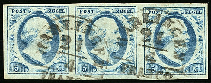 1f-Pl.II-38/40. Prachtstrip van drie waarop 2x Harlingen A. Strippen van plaat II zijn zeldzaam!