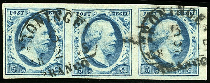 1d-Pl.II-83/85. Breed gerande prachtstrip van drie, 2x afgest. met Groningen B. Strippen van plaat II zijn zeldzaam!