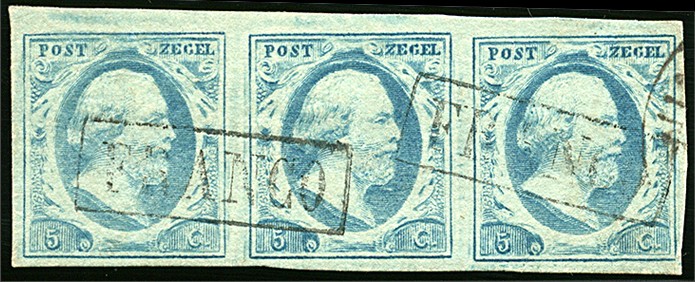 1k-Pl.III-11/13. Prachtstrip van drie waarop 2x Franco in kader wat een zeldzaam stempel is op deze plaat