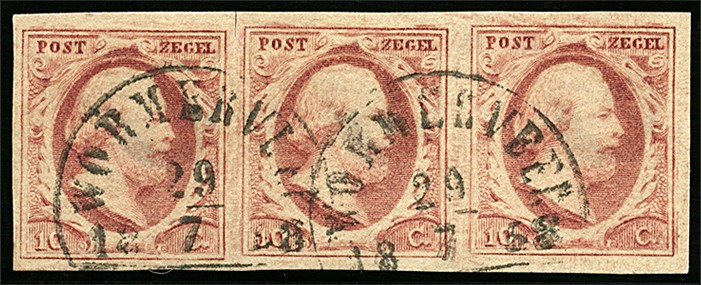 2g-Pl.IV-66/68. Prachtstrip van drie (met klein knipje in bovenrand tussen zegels 67 en 68), 2x afgest. Wormerveer B