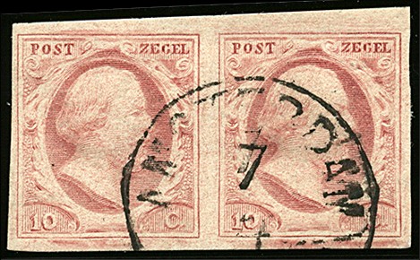 AMSTERDAM C zonder jaartal (EY.100) op 10 cent nr. 2i-Pl.V-77/78. Breed gerand prachtpaar met lichte, centrale afst.