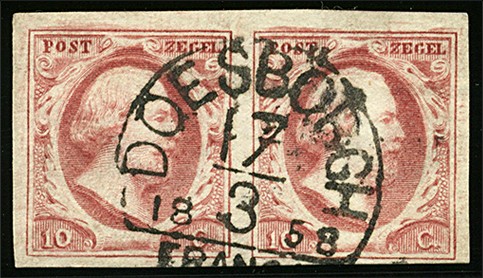DOESBORGH C groot (EY.100) op 10 cent nr. 2h-Pl.V-32/33. Prachtpaar met zeer mooie, centrale afst.