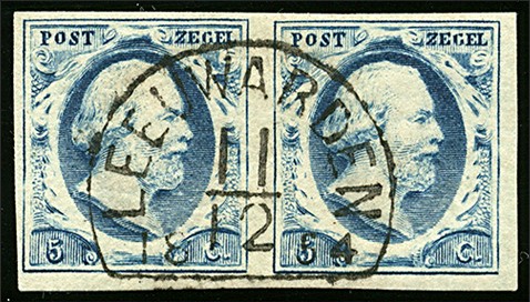 LEEUWARDEN C (lijkt klein) (EY.75) op 5 cent nr. 1b-Pl.I-53/54. Mooi paar (boven iets smal) met centrale afst.