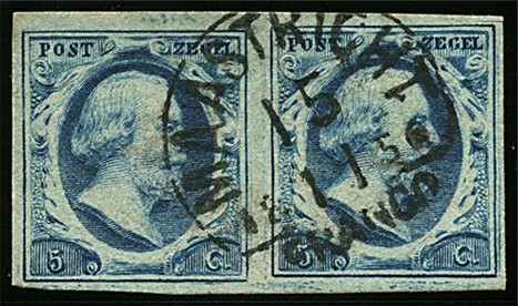 MAASTRICHT C groot (EY.50) op 5 cent nr. 1i-Pl.III-13/14. Prachtpaar met centrale afst.