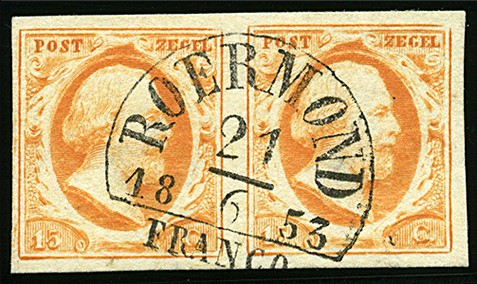 ROERMOND B (EY.125) op 15 cent nr. 3b, pos. 9/10. Prachtpaar met ideale afst. Cert. 'NVPH 1991'
