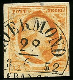 ROERMOND B (EY.125) op 15 cent. Aan drie zijden breed gerand vrijwel prachtex. met mooie afst.