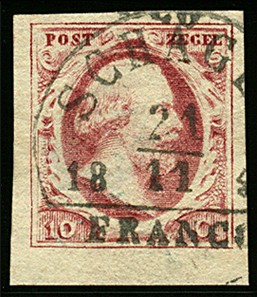 SCHAGEN B (EY.150) op 10 cent nr. 2b-Pl.I-48. Pracht randstuk met bijna volledige afst.