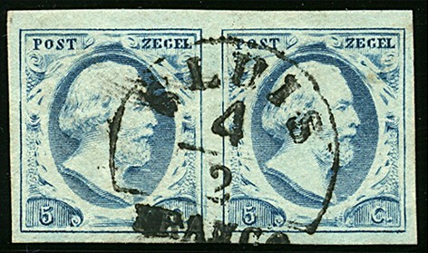 SLUIS A (EY.125) op 5 cent nr. 1d-Pl.II-43/44. Prachtpaar met centrale afst.