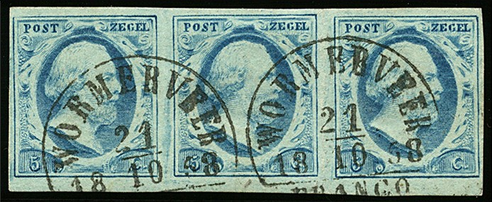 WORMERVEER B (EY.50) op 5 cent nr. 1j-Pl.III-86/88. Prachtstrip van drie met twee mooie afst.
