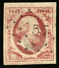PUNTSTEMPEL 57 van 'sHertogenbosch op 10 cent nr. 2g-Pl.IV-52 (EY.1000). Breed gerand vrijwel prachtex. (op de 10 miniem schaafplekje) met mooie afst.