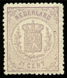 18C, 2½ cent violet, Kt. 13¼ kl.g., postfris prachtex. met certificaat C. Muis (2010) € 3250