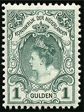 77C, 1 gulden blauwgroen in lijntanding 11 x 11½, postfris prachtex. € 525