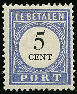 P19P in type I, proefport 1894, ongebruikt prachtex. door Ir. A.D.R. Verbeek gepositioneerd en beschreven op kaartje met 25 cent P11, Indië P18 en Curaçao P11 ter vergelijking. Ca. € 750