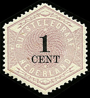 1, 1 cent lila en zwart, postfris prachtex. met miniem bruin vlekje € 550