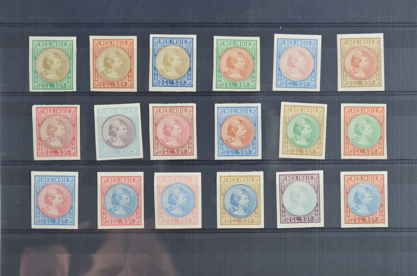 Kleurenproeven ongetand zonder gom uit PC41 a t/m s, 18 stuks waarbij gekozen kleuren