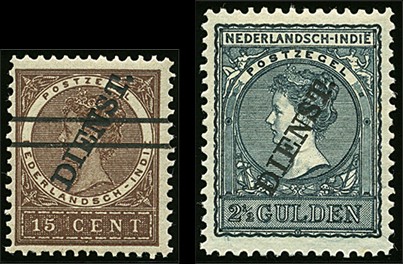 Dienst 8/27, cpl. postfrisse prachtserie, certificaat Bakker voor de nrs. 19a en 27 € 625