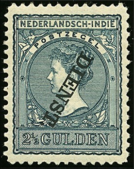 Dienst 27f, 2½ Gulden zwartblauw met kopstaande opdruk, postfris vrijwel prachtex. (min. bruin puntje), keur Hekker € 600