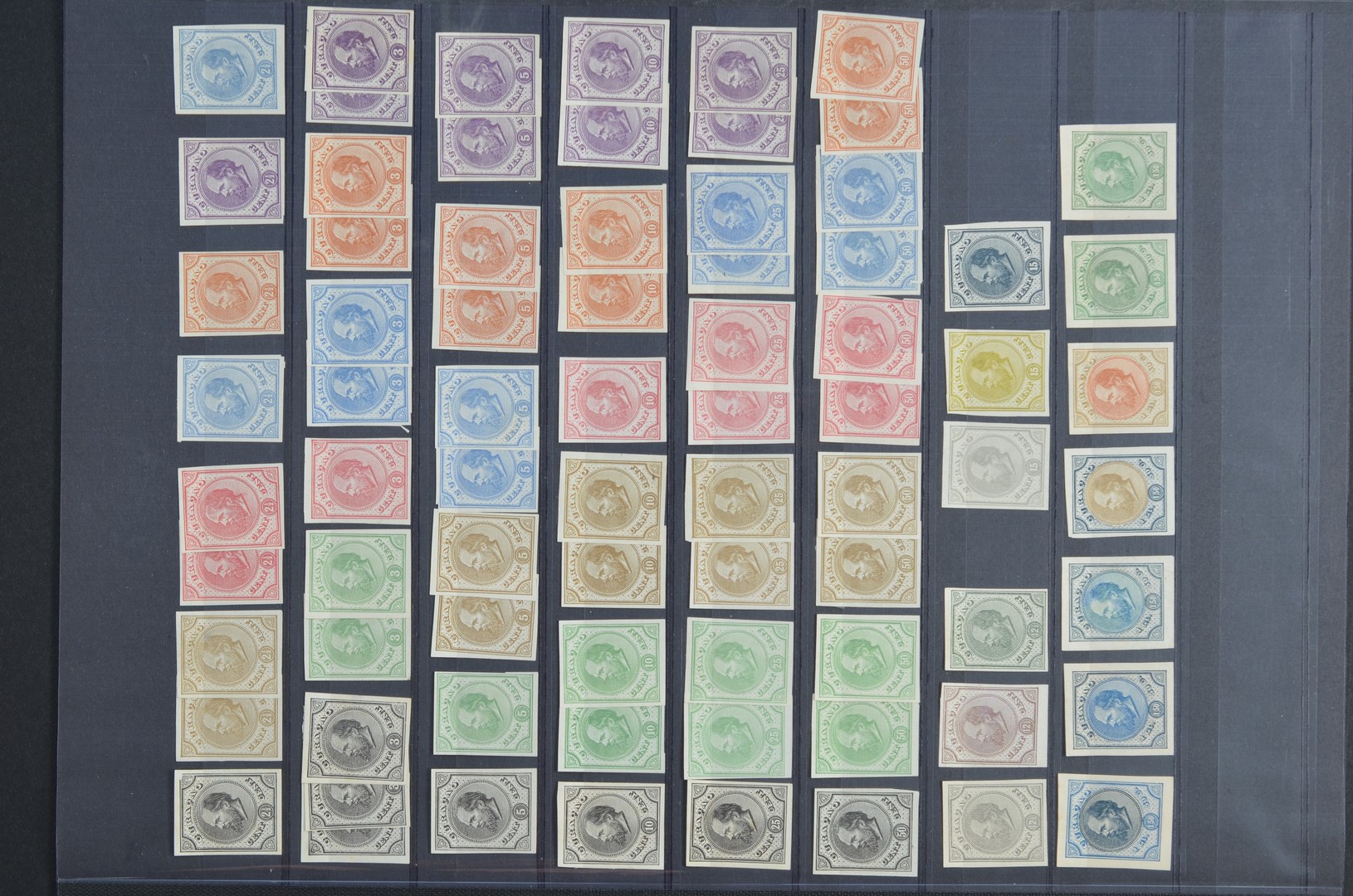 Emissie 1873, Berlijnse en Haarlemse kleurproeven, 76 stuks uit PC1-PC10, meest prachtex.