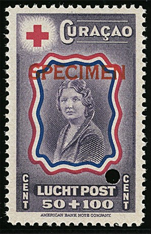 Luchtpost 45/52, Rode Kruis 1944, postfrisse serie met rode opdruk 'Specimen' en perforatiegat, oplage van slechts 200 series !