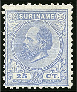10aD, 25 cent licht-ultramarijn, Kt. 11½ x 12, ongebruikt prachtex. met cert. Vleeming (2012) € 500