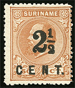 21A, 2½ cent op 50 ct. oranjebruin, Lt. 14 kl.g., ongebruikt prachtex. met cert. Muis (1991) € 400