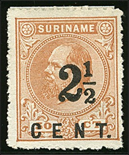 21A, 2½ ct. op 50 ct. oranjebruin, ongebr. prachtex. € 400