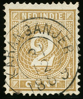 Kleinrond KARANGANJER op 2c nr. 18. Vrijwel prachtex. (az. zwart puntje) met luxe oudejaarsafst. (SvL 100)