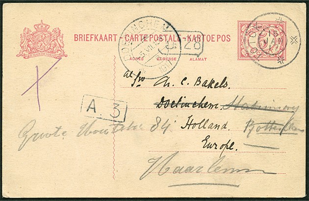 Bk. G23 superbe afgest. met grootrond TOTOK met kwartslag gedraaide datum 16 JAN 17 via Menado 17-1 naar Doetinchem en op 5-7 doorgez. (GR, SvL R)