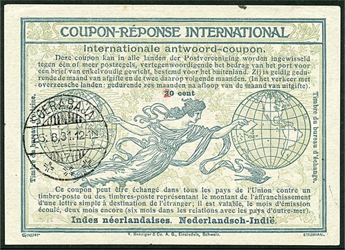 IAC van 30 cent met pen gewijzigd in '20' G2a afgest. Soerabaja 25-8-1931