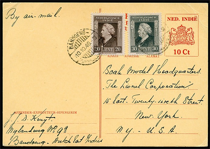 Bk. G72b bijgefr. met 20c en 30c voor het luchtrecht van Bandoeng 10-10-1946 naar New York. Tevens 3½c bk. G71 (vouw) van Ketapang 4-1-1946 naar Pontianak