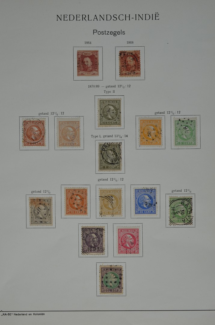 NEDERLANDS-INDIË 1864-1940, o/* verz. op albumbladen met 1/2, 149/59, 165/66 en leuk Port en Dienst