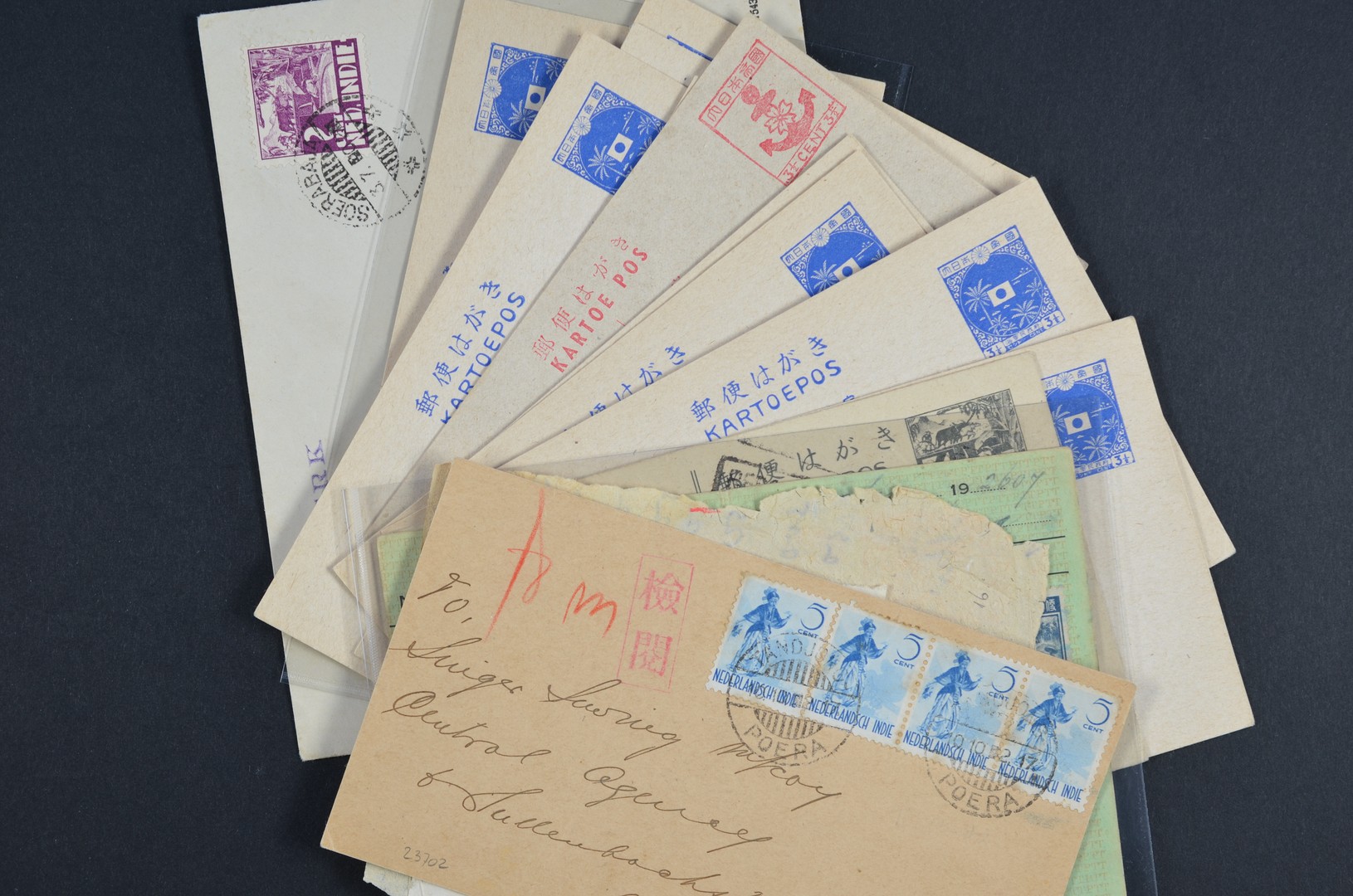 NED.- INDIË JAP. BEZ. 15 Post(waarde)stukken w.o. ongebruikt en incl. identiteitskaart Palembang 20.1.2 en bk. uit Republiek