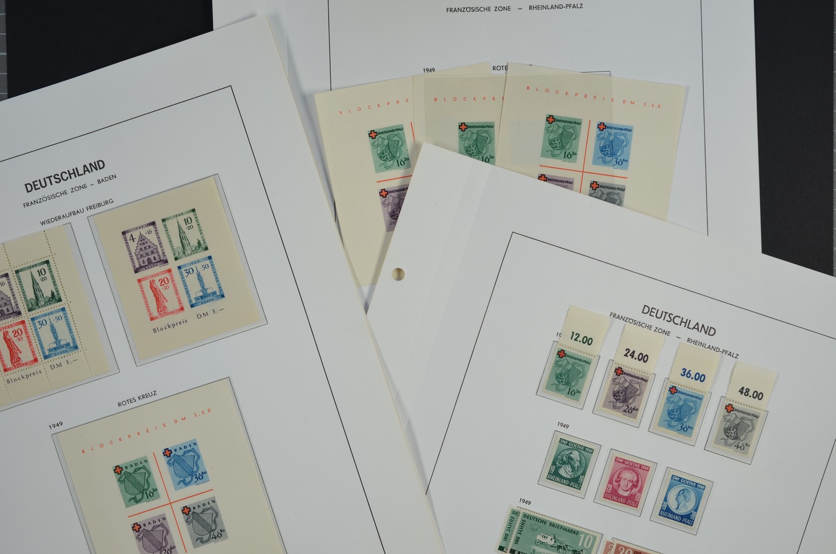 DUITSLAND, Franse, Britse en Amerikaanse Zone */** verzameling op albumbladen., met goede nrs., series en blokken