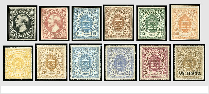 LUXEMBURG 1852-1880, (*)/*/**, mooie kleine verzameling op insteekkaart, wb. nr.1 met gom, 2 (*), 40 (*) keur Demuth, 20 (*) a en b, 22 (*) met keur, etc. Zelden zo aangeboden !