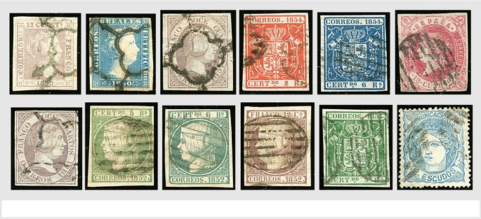 SPANJE 1850-1900, verzameling oudere emissies op 3 insteekbladen, in wisselende kwaliteit waarbij diverse goede nrs. zoals 1/4, 7, 13, 15/16, 20, 22, 28/30, 52, 58, 76, 185, etc.