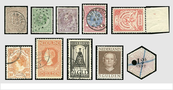 1852-1981, o/*/**, uitgebreide collectie in 2 Safe albums, in het klassieke gedeelte zeer uitgebreid met typen en tandingen o.a. zeer fraaie 13A o (attest), 24A o, 26F o, 61c o (iets verstevigd), 80 o (attest), 101 o (attest), 130/31 o, 534/37 ** (536 2 x), Brandkast 1/7 *, Postbewijs o, alsmede goed Roltanding, Port en Dienst. Zeer hoge cat.wrd. !!