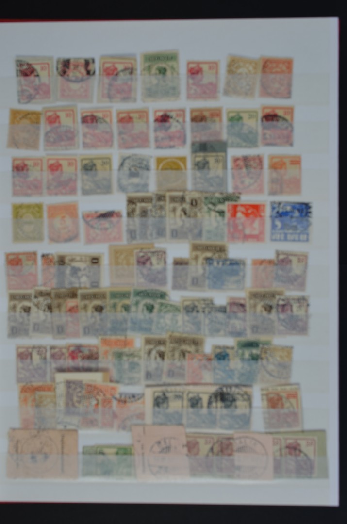 NED.- INDIË POSTHISTORIE, diverse stempels, meest type LB en iets KBU, etc. op losse zegels en zegels op knipsels, in insteekboek