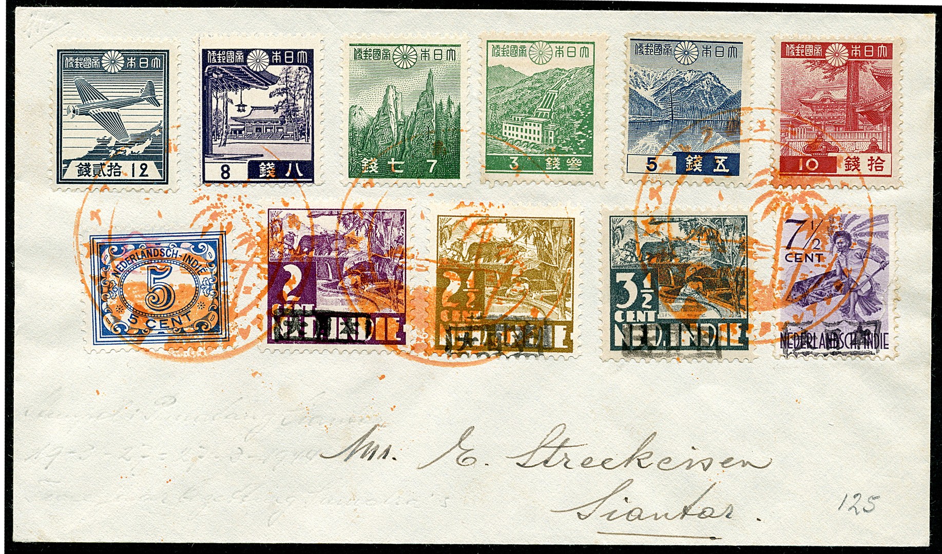 'Second Anniversary of the Rebirth of Sumatra' in orange (type 425) on a local cover of Pematang Siantar