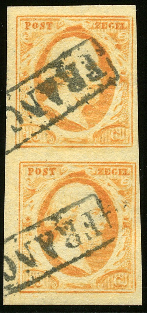 3b, pos. 6/11. Aan drie zijden zeer breed gerand prachtpaar