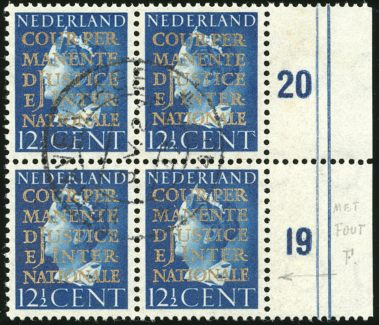 16f/19f, Cour Internationale de Justice, gebruikte blokken van vier met velrand €.520